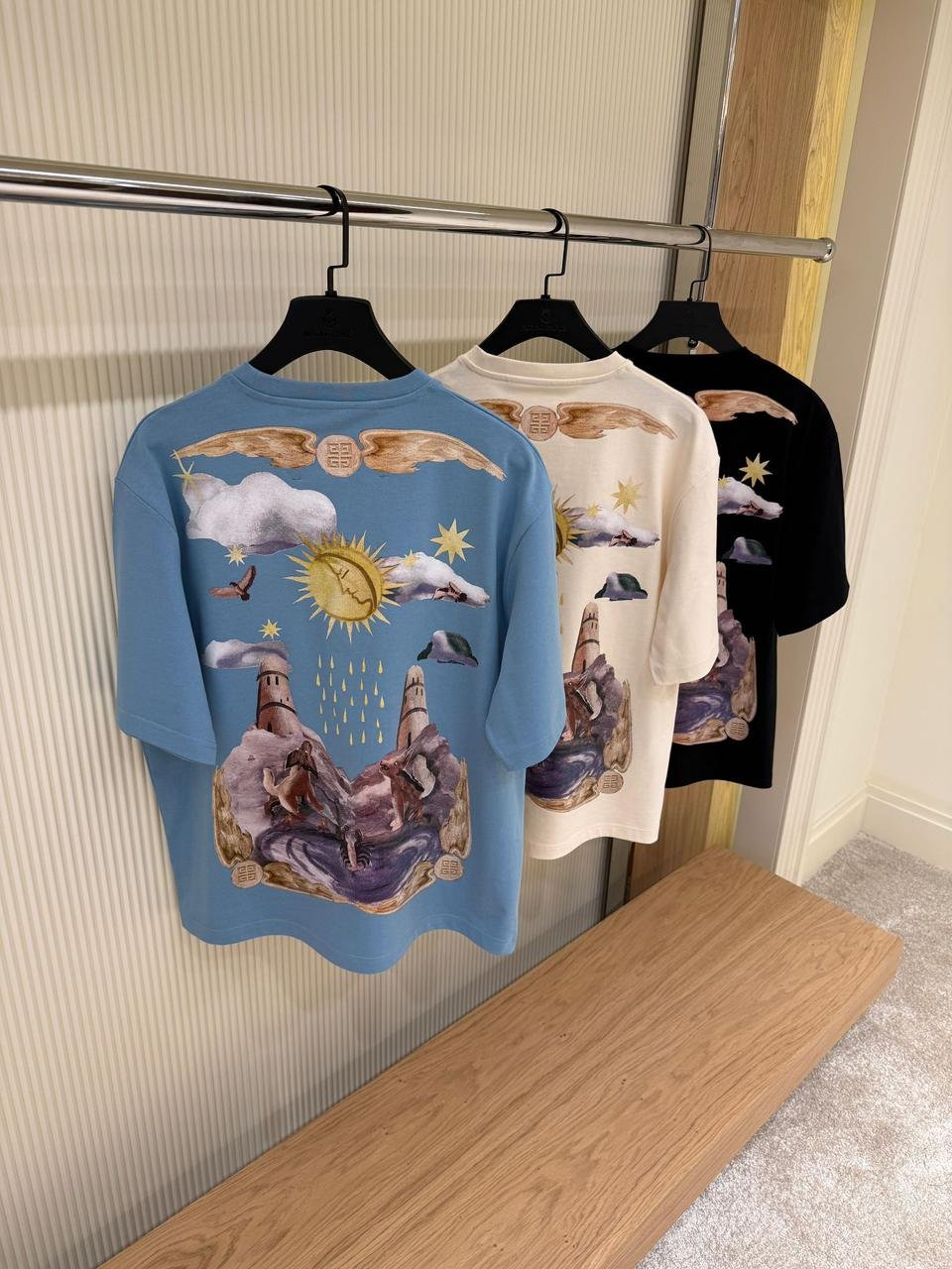 Black, Blue, Beige