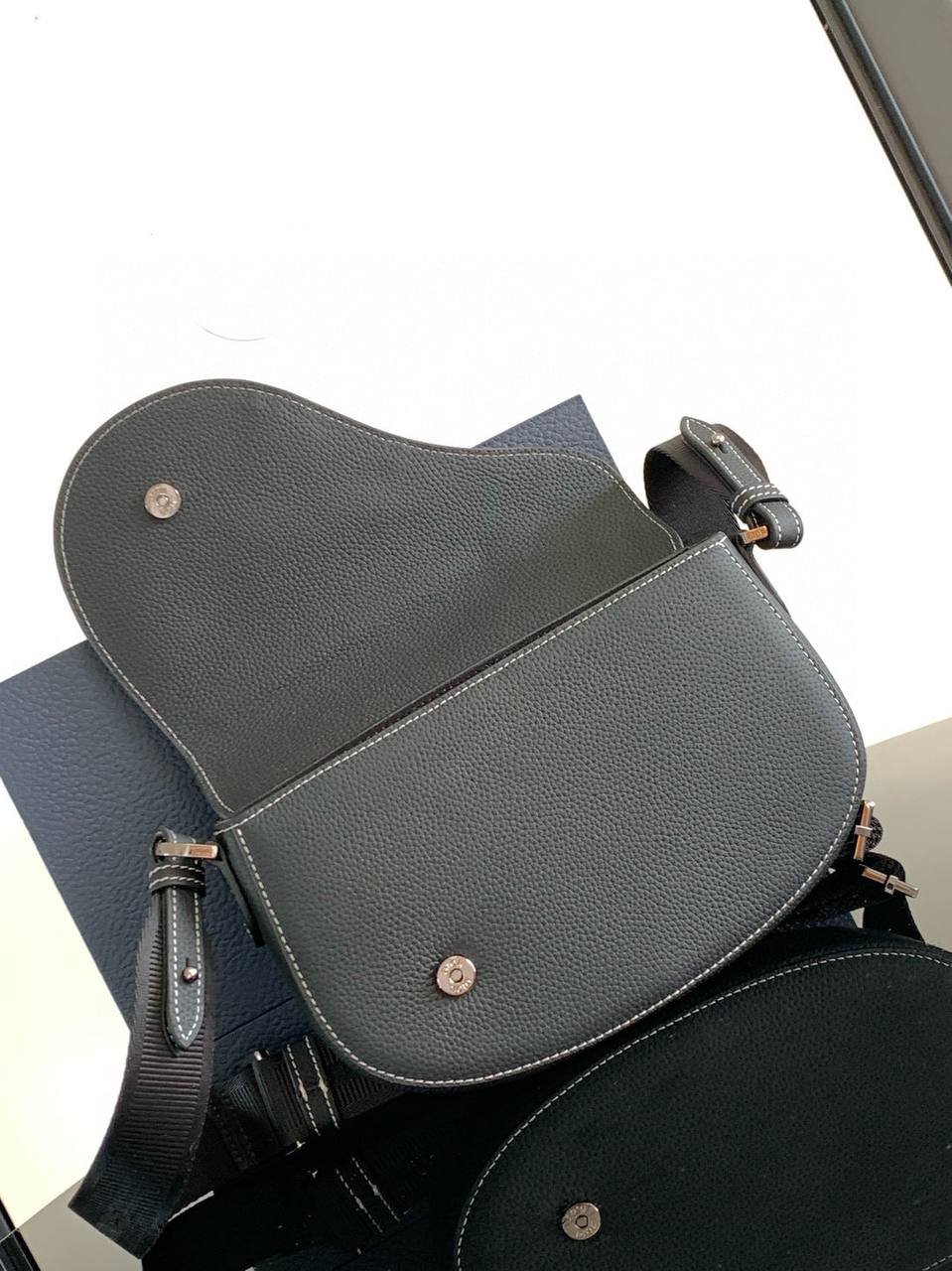 Saddle Messenger Bag Black Grained Calfskin